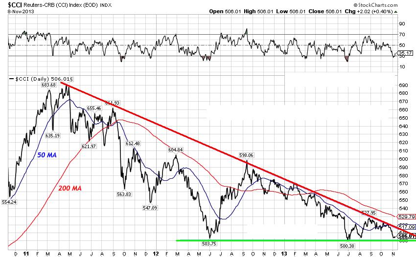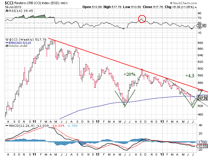 haben die Rohstoffbären immer noch die Oberhand(fallendes Dreieck).