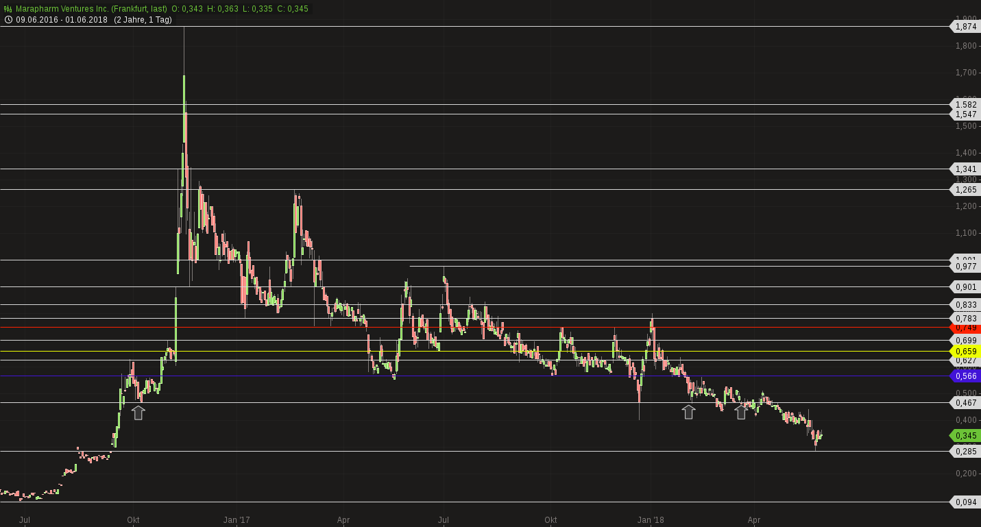 Und bei Mara ist der Boden der Aktie nun mehrfach bestätigt, von hier aus kann es jederzeit nach oben springen. Eine Nachricht wäre die Legalisierung, eine andere wäre die gut laufende Produktion bei Mara, was zum Anstieg führt. Jetzt gilt Aktie kaufen und liegen lassen.....