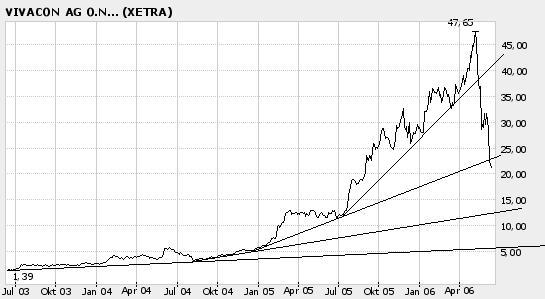 Während mehr oder weniger alle Werte seit Anfang Mai 2006 teilweise heftig an Wert verloren haben, scheint Vivacon wie eine Seifenblase zu zerplatzen.