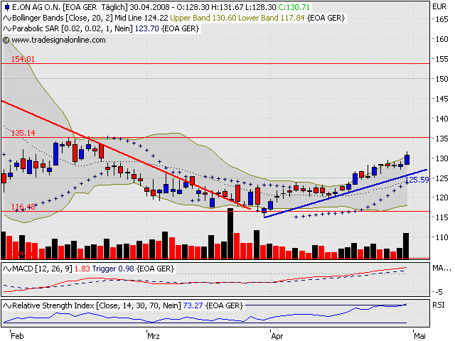Bei Erreichen der 135,- sollte man über eine Absicherung nach unten nachdenken.