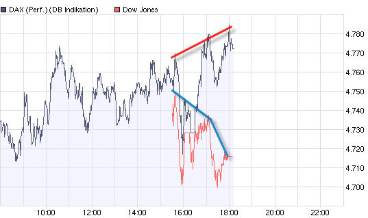 das Auseinanderlaufen von Dax und Dow irritiert mich auch -