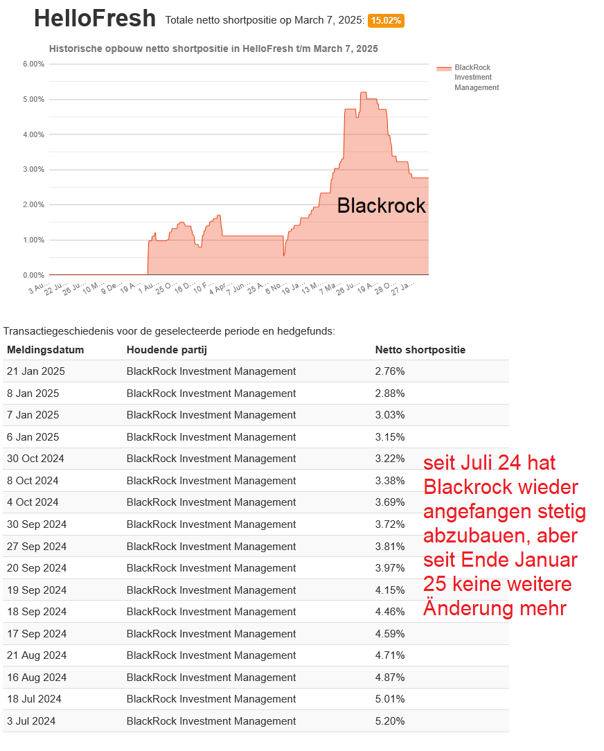 Kurs war ja vorhin schon ganz kurz 2 Cent unter der 10er Marke. Würdest du auch schon VOR den Zahlen eventuell verdoppeln oder doch vielleicht erst einmal schauen was wirklich Sache ist nächste Woche bei den Zahlen und dann erst entscheiden? Übernächsten Freitag ist der erste große Verfallstag in diesem Jahr. Das war bei HF in der Vergangenheit oft ein Punkt um den herum der Kurs wieder vom vorhergehenden Trend umschwenkte. Muß nicht wieder so kommen. Aber vielleicht auch das mal mit im Auge behalten. Und bzgl. LV : Blackrock hat seit Januar nicht mehr weiter abgebaut und hat noch immer ungefähr soviel LV Quote wie Marshall Wace. Da wäre auch interessant zu wissen, ob die bald weiter abbauen ( was sicherlich zuvor auch lange mitgeholfen hatte die Kurse nach oben wieder zu treiben) oder ob die weiter stagnieren mit dem Bestand.