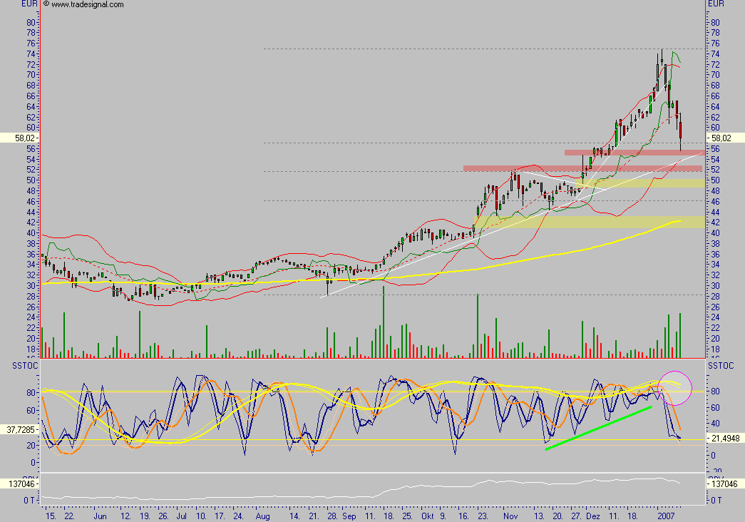 Wenn diese Marke allerdings fällt, dann wären wir möglicherweise irgendwann wieder im Bereich 35,- bis 38,- , dort wo die steile Rallye begann.