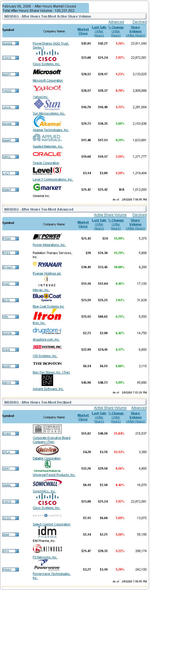 Last update: 1:32 p.m. EST Feb. 6, 2008