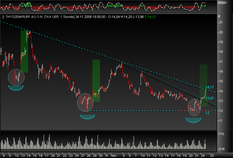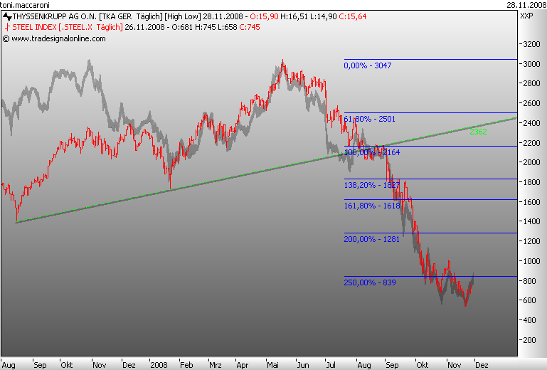 Meiner Meinung nach ist Thyssen zu diesen Preisen trotzdem ein Schnäppchen, zumal im Januar schon die Dividende kommt. Aber die Performance 2009 wird sicher nicht übermäßig. Ab Ende 2009 könnte es sich wiieder lohnen.