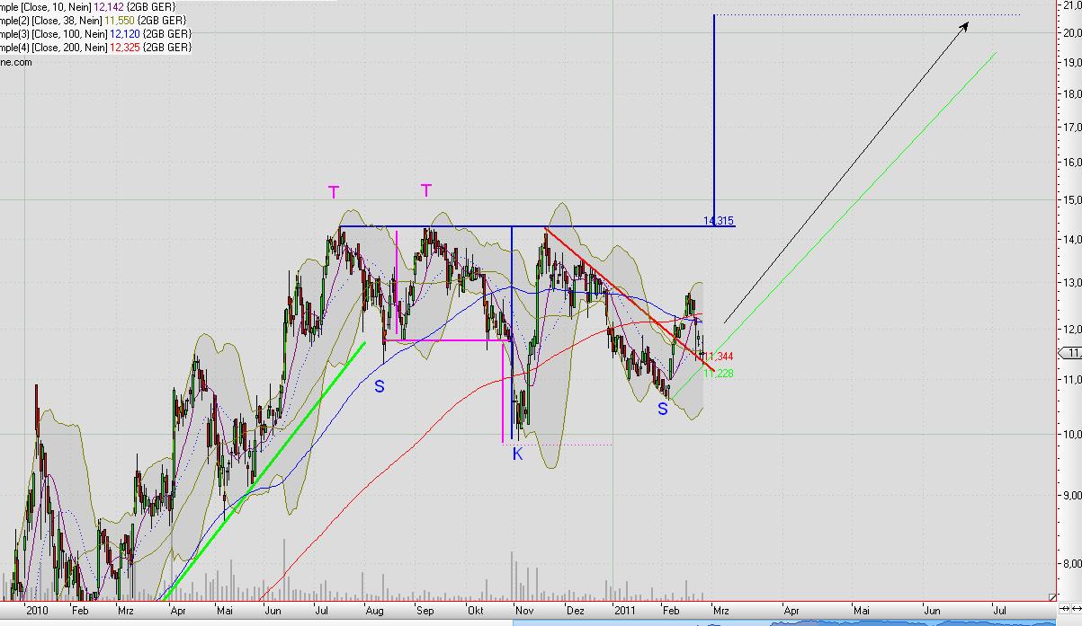 Bei 14 ist die Aktie im letzten Jahr 3 Mal abgeprallt. Danach ist es nach oben offen. Wenn die Perspektive über 2011(Biogasboom in 2011 wegen Gesetzesänderung in Dtld ) hinaus gut ist, dann könnten schnell 20 Euro erreicht werden. US-Geschäft war ja bisher sehr erfolgreich und der Ölpreis steigt schön. Da werden hoffentlich viele auf Gasmotoren von 2G umsteigen