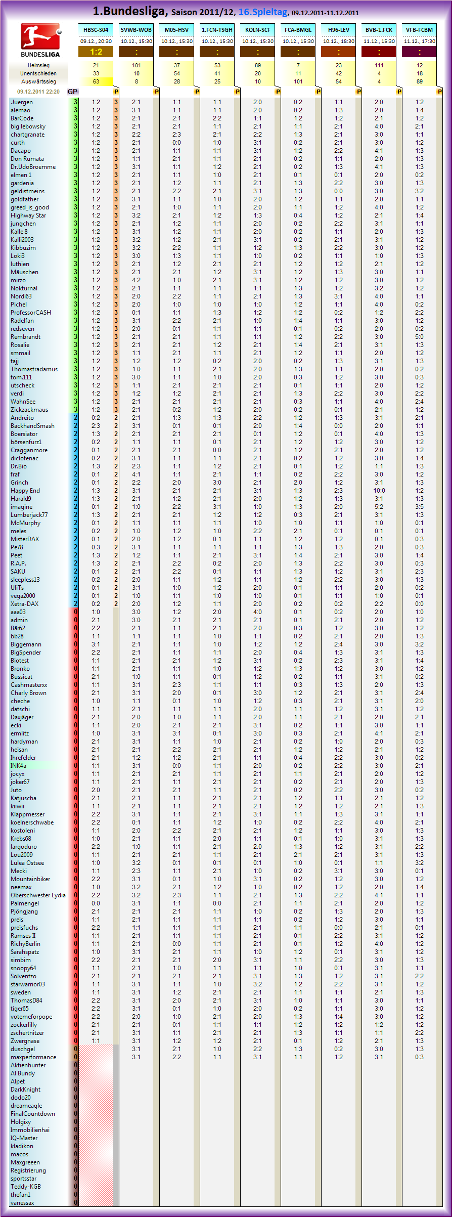 ENDAUSWERTUNG -Spieltag 16- Tagessiegerwertung 9/9