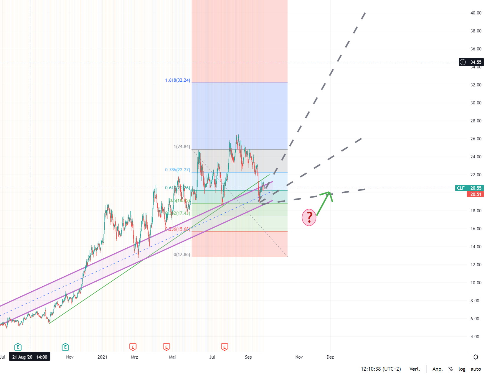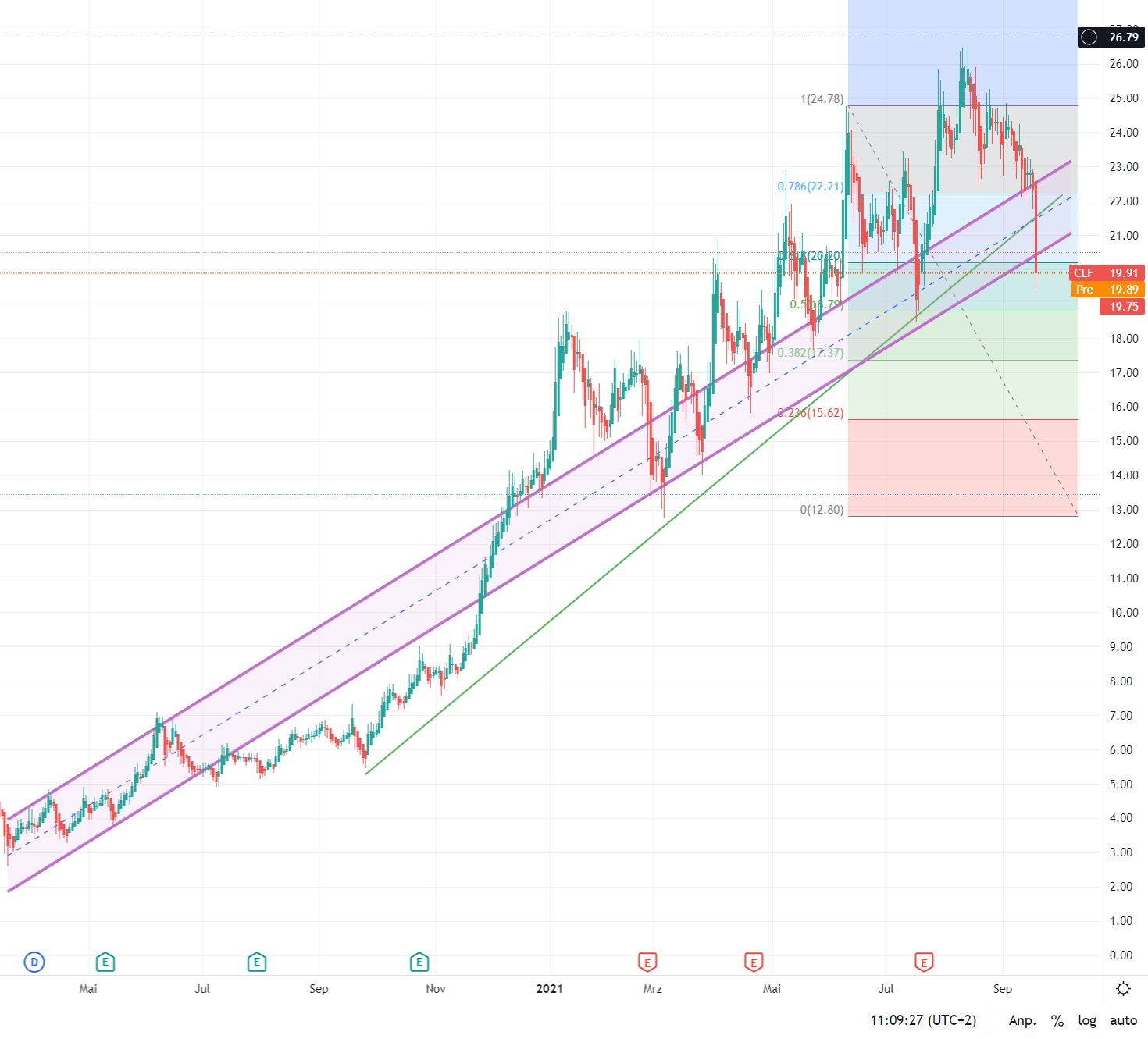 so hat der Kursverlauf trotzdem nicht nur die unteren Kante des Coronakanals, die U-Linie durch die aufsteigenden Tiefs gekreuzt, er ist auch in das nächste Retrace gefallen.