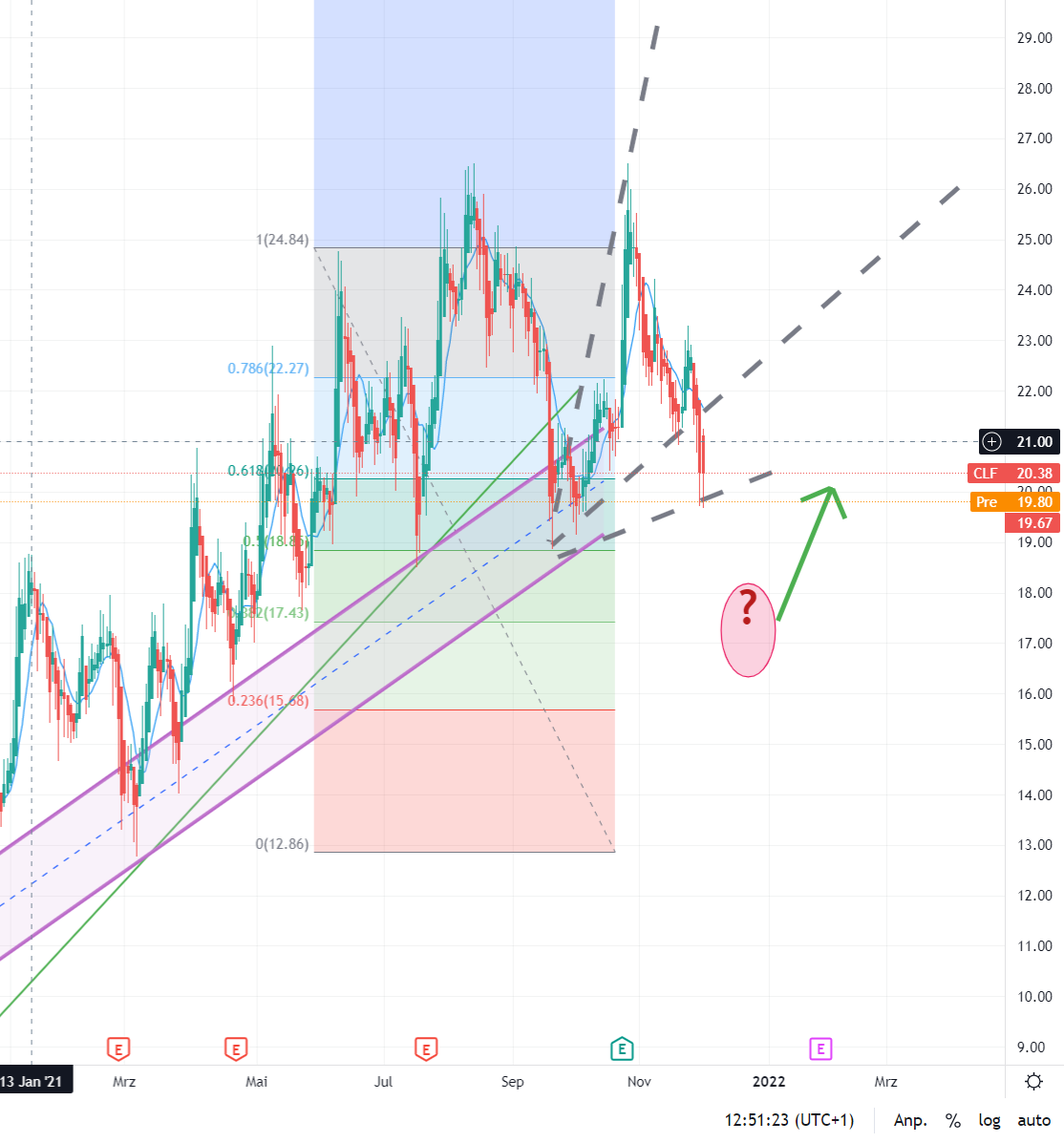 Werte unter 20.-USD sind interessant, ich würde aber ggf. nochmal abwarten, was er innerhalb des Retraces vorhat.