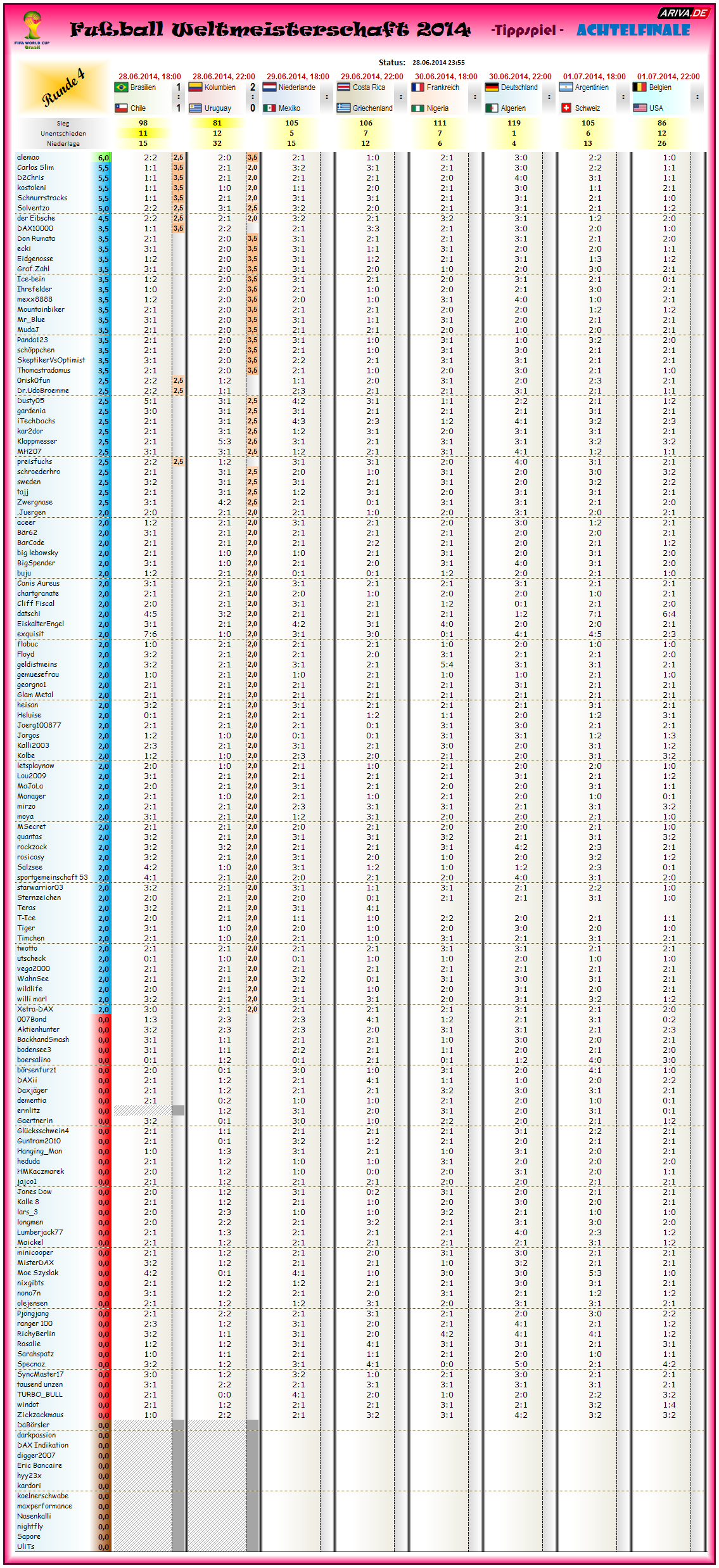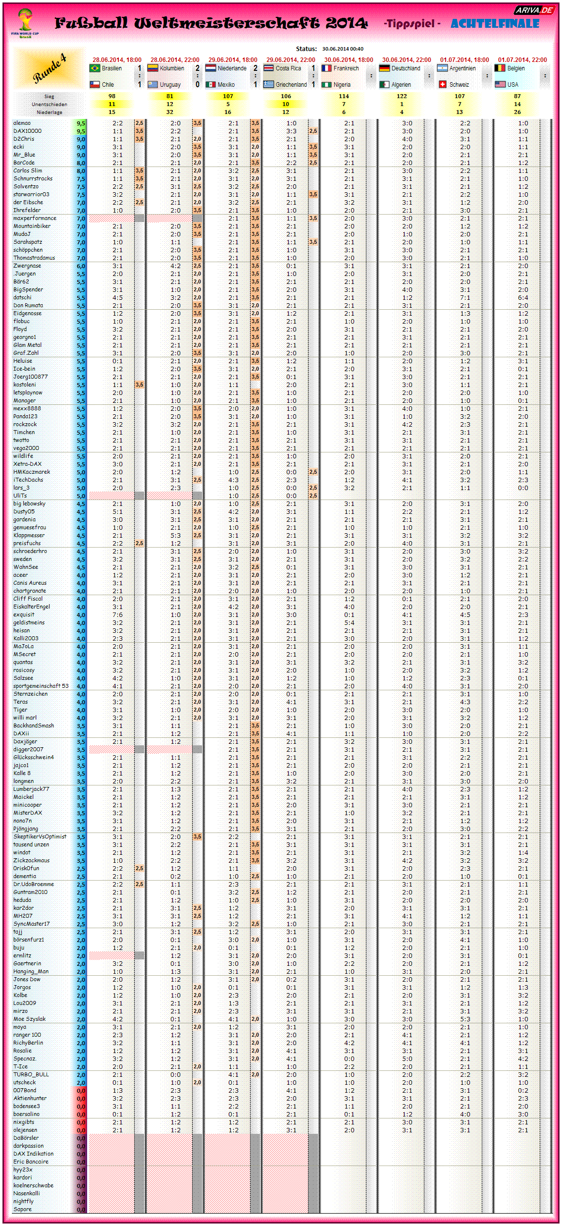 Tippspiel WM2014, Achtelfinale