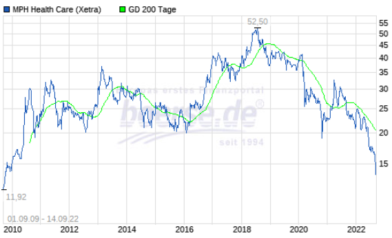 die MPH-aktienkursentwicklung verläuft ganz nach dem geschmack der MPH-kaufinteressenten; der kurs ist --wenn es für die (not)verkäufer der aktie nicht so traurig wäre (heutiges MPH-umsatzvolumen [alle börsen]: 103.272 EUR)-- zum totlachen (36,51 ist der buchwert der MPH-aktie zum 30.06.2022, s. oben v. 13.09.22)