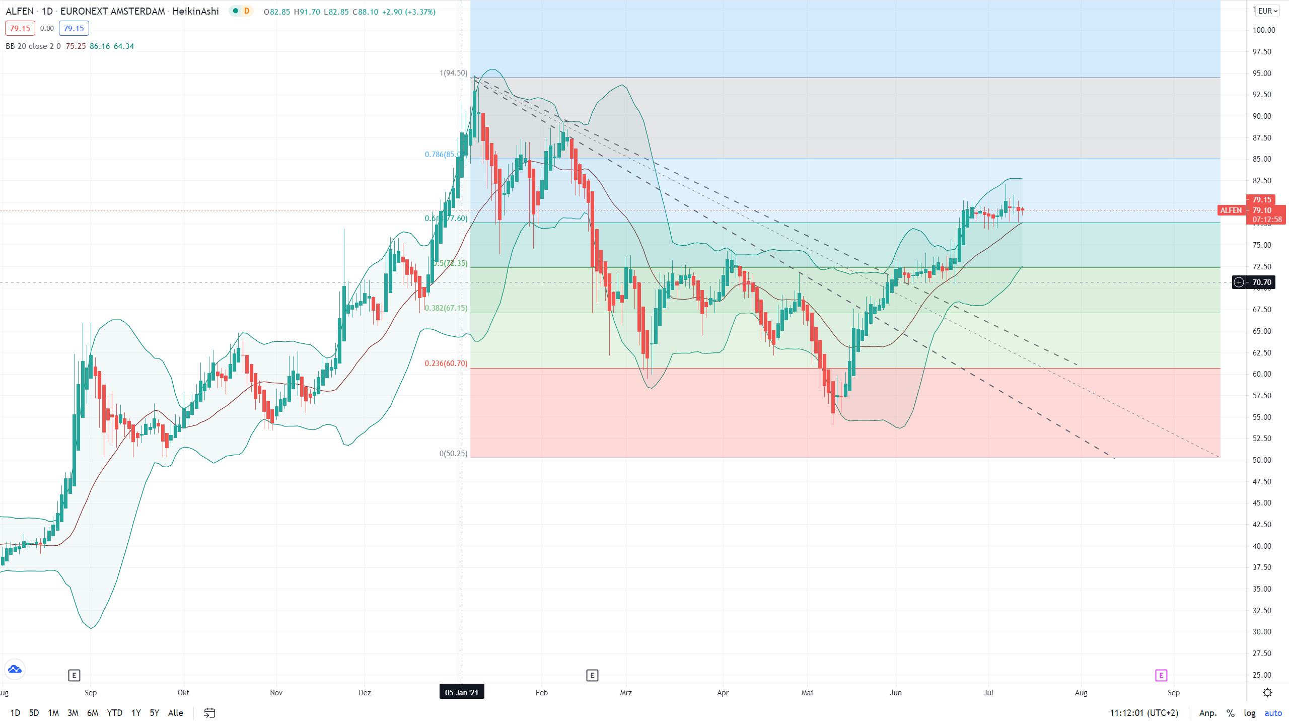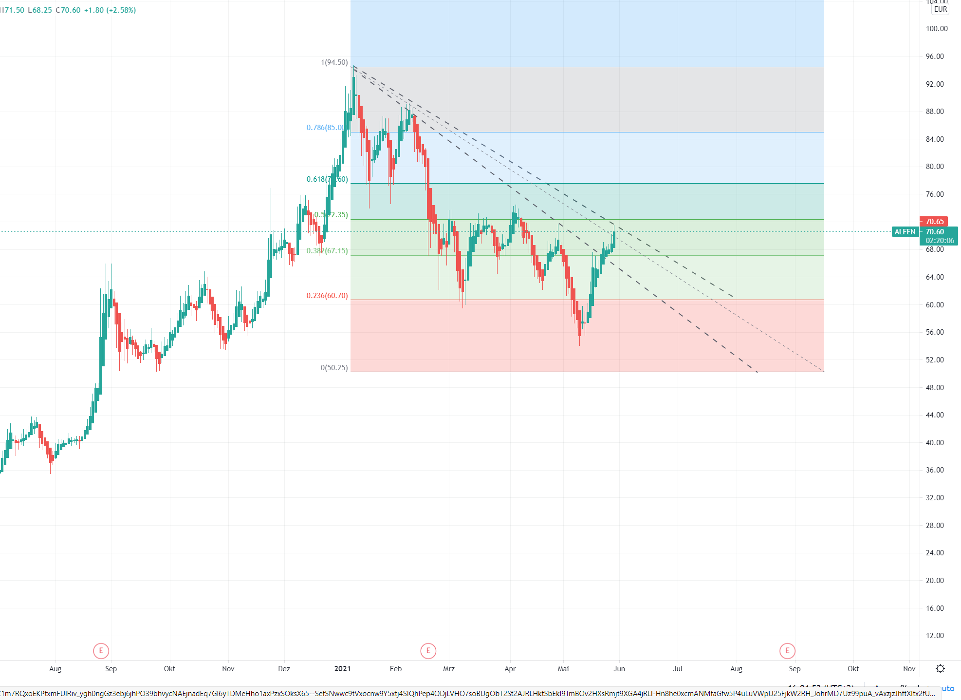Der Kurs bewegt sich seit 4 Tagen in der Unterstützungszone, nächste Hürde liegt 72,55 €.
