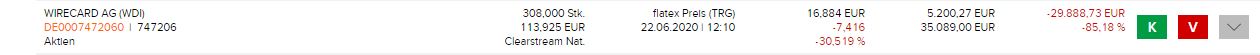 Als die besagten Werte dann in den letzten Wochen wieder bröckelten, habe ich diese mit Gewinn verkauft und mir Aktien gesucht, welche von der Corona-Erholung noch nicht partizipiert haben und da war eben Wirecard ganz vorne dabei. Es gab natürlich Anzeichen und Ungereimtheiten, jedoch gingen diese durch die zuletzt testierten Zahlen, Analsytenmeinungen und wegen dem erfolgreichen Geschäftsmodell unter. Das schnelle Wachstum war im Vergleich zu den Mitbewerbern auch nicht ungewöhnlich und schöpfte keinen Verdacht der Manipulation. Viele Andere und auch ich haben niemals erwartet, dass so etwas in der heutigen Zeit im DAX noch möglich ist. Schwankungen von 30-40% ok, aber so eine Bombe? Im Nachhinein gesehen ist man natürlich immer schlauer und hat zu viel investiert, aber wenn das Ganze anders gelaufen wäre, hätte man einen zukunftssicheren Wert mit hohen Erfolgsaussichten im Depot gehabt.