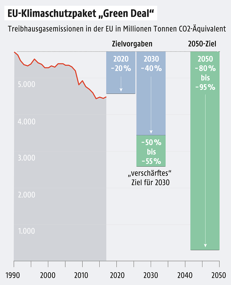 "Zwar hat sich die EU mit dem der Klimarahmenkonvention 2002 im Kyoto-Protokoll dazu verpflichtet, die Treibhausgasemissionen bis 2050 um 80 bis 95% zu reduzieren, doch schon heute ist klar: Die gesteckten Klimaziele zu erreichen wird schwierig.