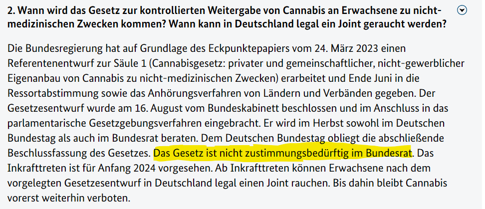 Die Cannabis Legalisierung ist ein sogenanntes Einspruchsgesetz und kann vom Bundestag alleine Verabschiedet werden.