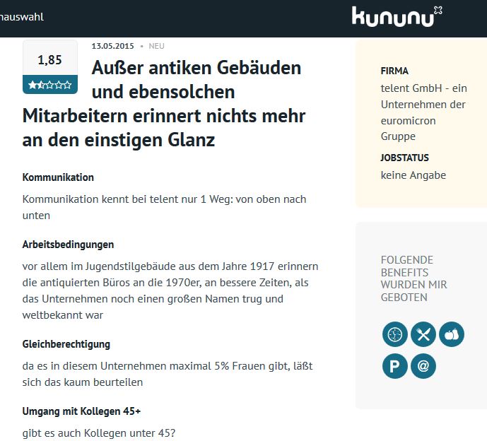 ständige wechsel der niederlass­ungsleiter­ in münchen (4 Niederlass­ungsleiter­ in 3 jahren), kompletter­ verlusst der 3 Geschäftsf­ührer der euromicron­ solutions,­ chaos egal wo.
