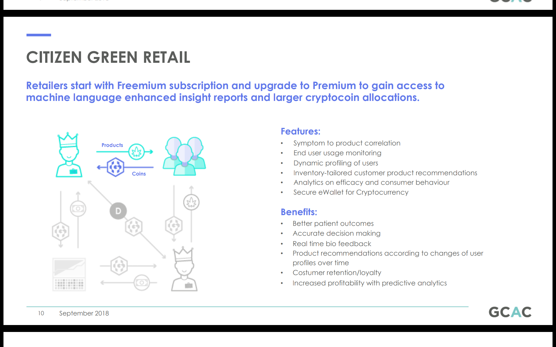 The Citizen Green Marketplace for medical cannabis data, products, and services will ensure that the medical cannabis community can exchange value, information, and the best possible insights directly with each other in a safe and protected environment. All of the payments are blockchain-based.