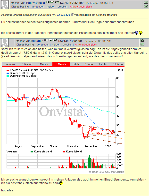 Zu Conergy selbst; Ich werd bei Kursen um siwe 18.- EUR rum wieder long gehen (bin jetzt gerade short).
