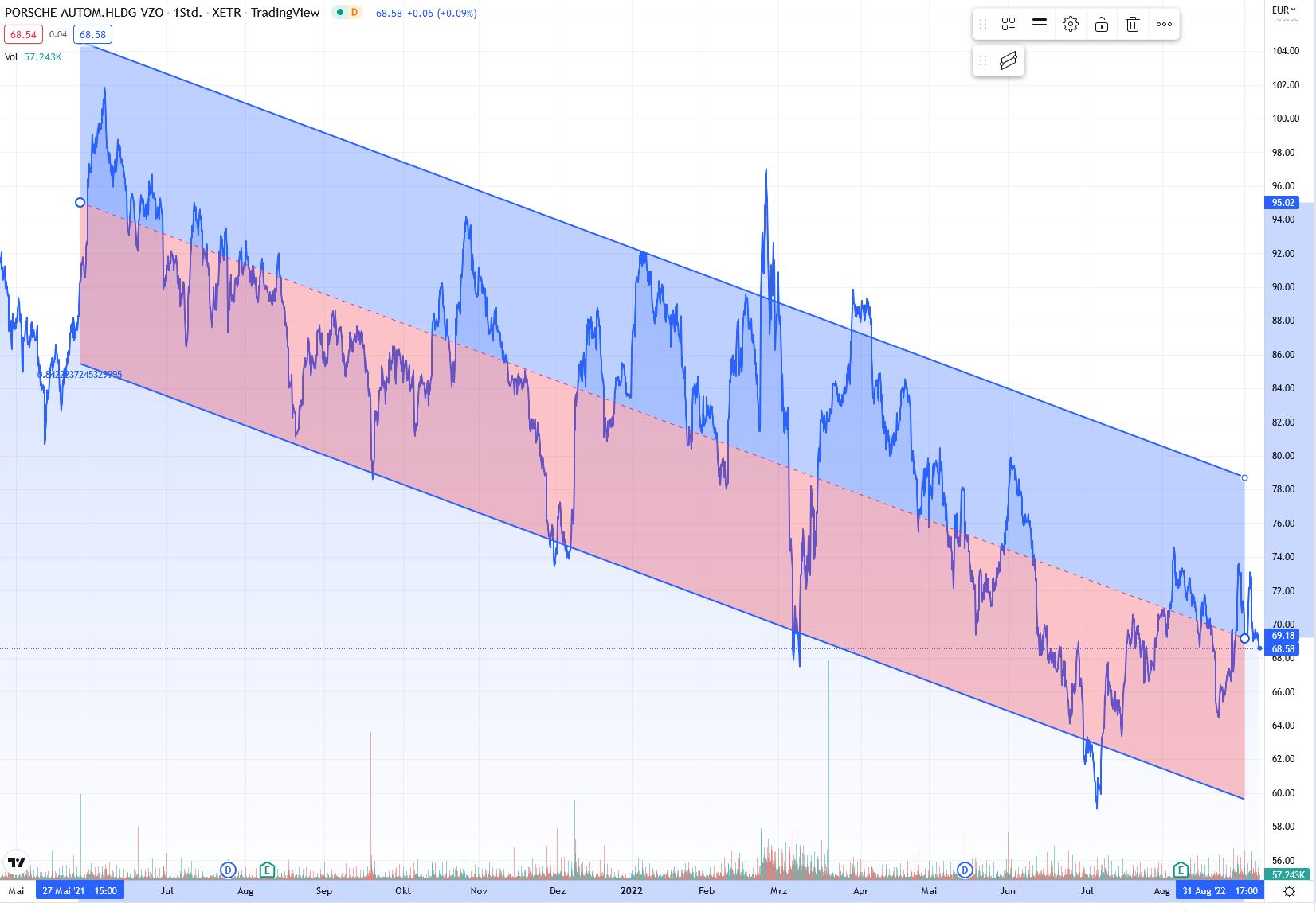Quelle Regressions Trend Porsche SE - Tradingview.com, Euro, Stand heute