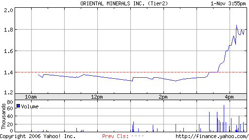ORIENTAL MINERALS INC (OTL:TSX-V) Create a Membership or Login