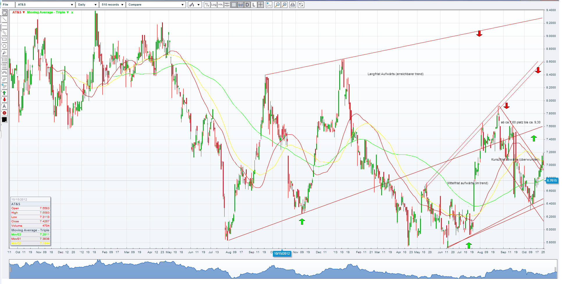 Wie man erkennen kann, zeigt dieser in den langfristigen Aufwärtstrend. Diesen sollten wir bei 7,60 Problem los betreten können, da der mittelfristige bis 8,60 platz hat. Der langfristige bietet platz bis 9,30€.
