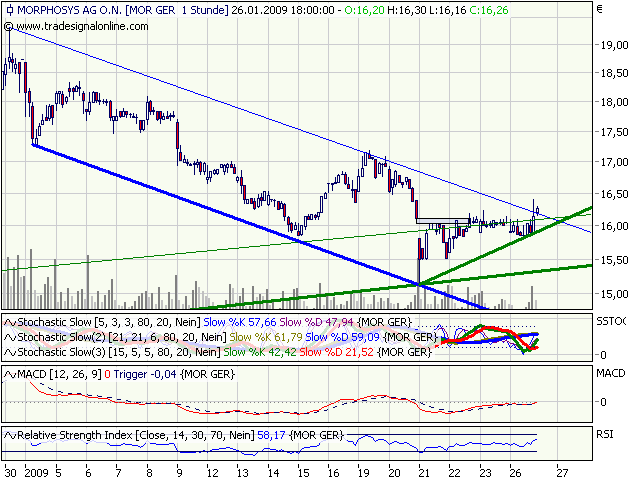 Katjuscha, es bleibt beim alten Stand: Morphosys wird dann aus dem aktuellen Bereich nach oben ausbrechen­ können, wenn entweder der gesamte Markt zukunftsop­timistisch­ nach oben dreht (das denke ich kommt auf absehbare Zeit nicht).
