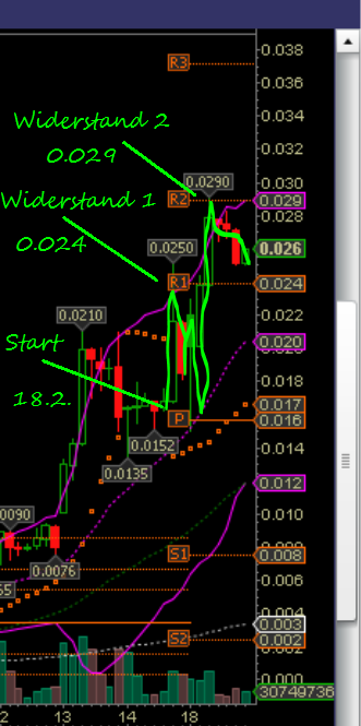 :-) nicht schlimm, ich nehme dich an die Hand und wir machen eine "Eisenbahnfahrt", tuuuut! jetzt geht es los, am 18.02. (start) und dann tuckert sie los, zu? Widerstand 1 das ist? die 0.024 und dann Abprall, oh je! und ufftata, Kraft tanken, macht Dampf auf dem Kessel Männer! sch.. sch.. sch.. sch.. zum nächsten Widerstand 0.029 ... erreicht und Rückzug