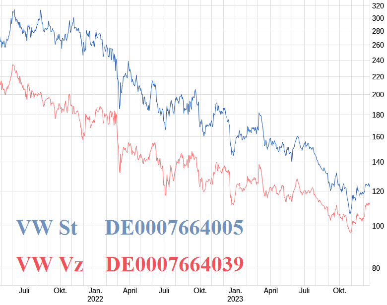 Momentan ist eine gute Gelegenheit VW Vorzüge auf VW Stämme umtauschen und dabei realisierte Kursverluste von der Steuer abschreiben.