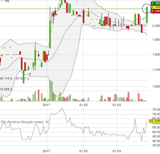 Fundamental ist Muehlhan jetzt vielleicht nicht sonderlich sexy, aber der Vorstand macht einen guten Job bei der Restrukturierung. Die Margen kommen deutlich voran. Und teuer ist man auch nicht wirklich. Daher würd ich schon sagen, dass die technischen Kaufsignale in diesem Fall auch wirklich zu einem echten Trigger für die mittelfristige Kursentwicklung geworden sein könnten.