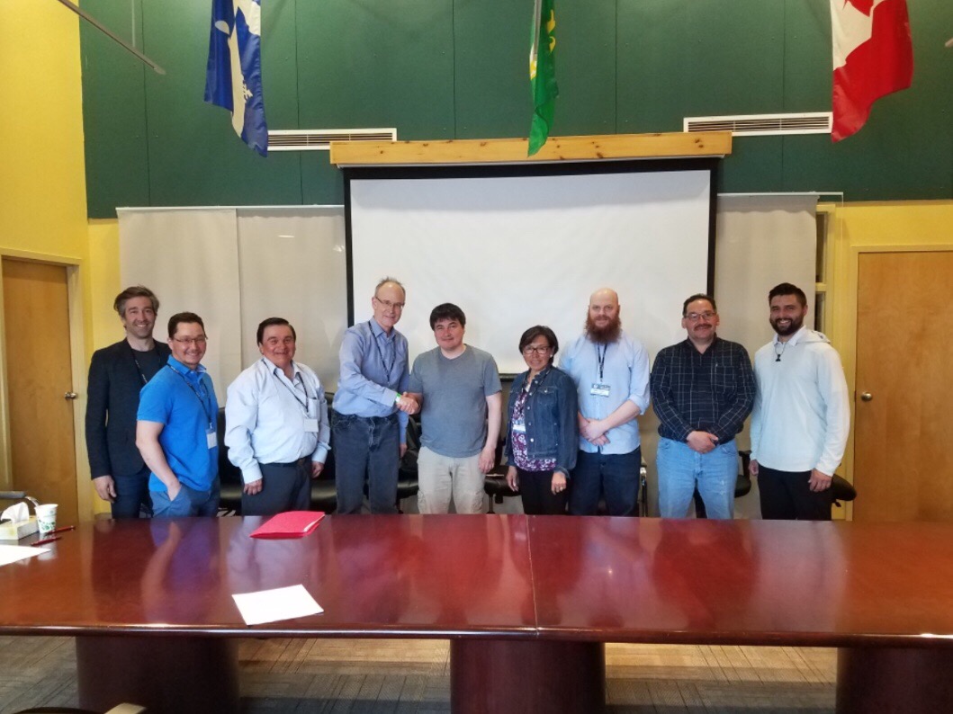 Jean-Marc Seguin, Mining Koordinator Makivik, Steven Kleist, Nayumivik, Sandy Gordon, Nayumivik, Chris Grove, Präsident Commerce Resources, Sammy Koneak, Präsident von Nayumivik und Bürgermeister von Kuujjuaq, Maggie Emudluk, Vizepräsidentin, Makivik, Darren Smith, Ashram-Projektleiter, George Peters, Nayumivik und Tiivi (David) Dupius, Direktor für Wirtschaftsentwicklung, Makivik.
