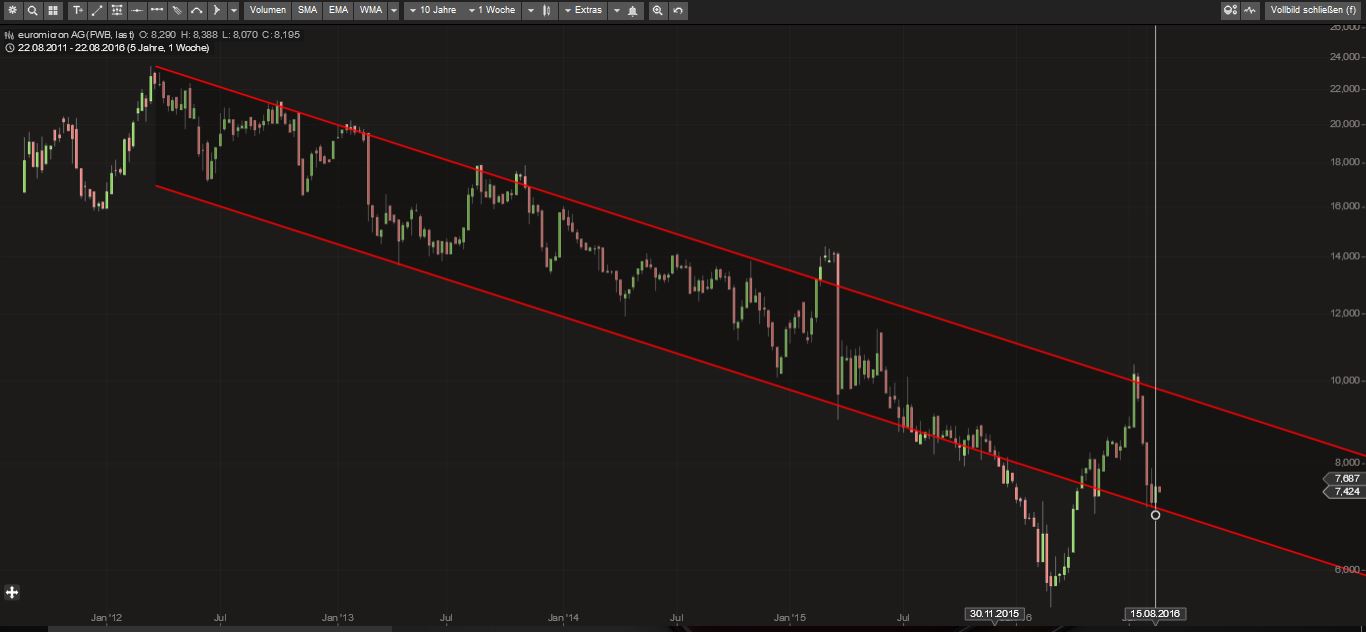 Das ist ja wirklich ein übler Kurs, wenn ich bedenke, dass ich die Aktie um die 20 herum verkauft habe damals und es seither eigentlich mehr oder weniger nur "langfristig Abwärts" ging.