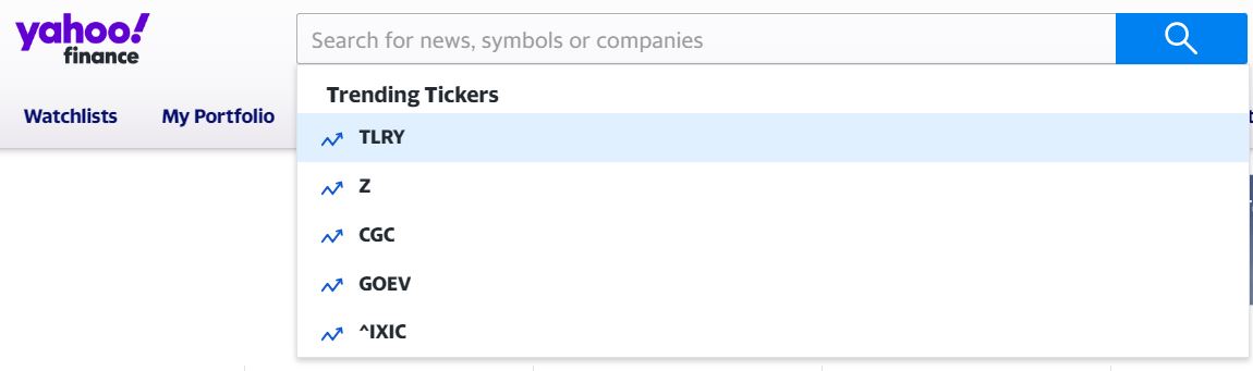 TLRY trendet bei Yahoo Finance auf #1