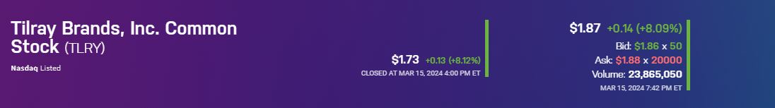 am Fahrplan von Tilray.