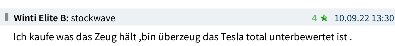 10. September 2022 _______ Tesla Kurs bei 300 US $