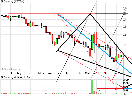 meine charts waren und sind immer noch meine eigene spinnerei, auf der suche nach der optimalen bestimmung. ich bin eigentlich zufrieden, die meisten sagen bildermaler mit negativen touch. ich aber mach weiter und denke, conergy kann gut möglich nach meiner bestimmung auf 0,08 euro fallen. schauts euch an, lacht aber nicht so das ich es hören kann!