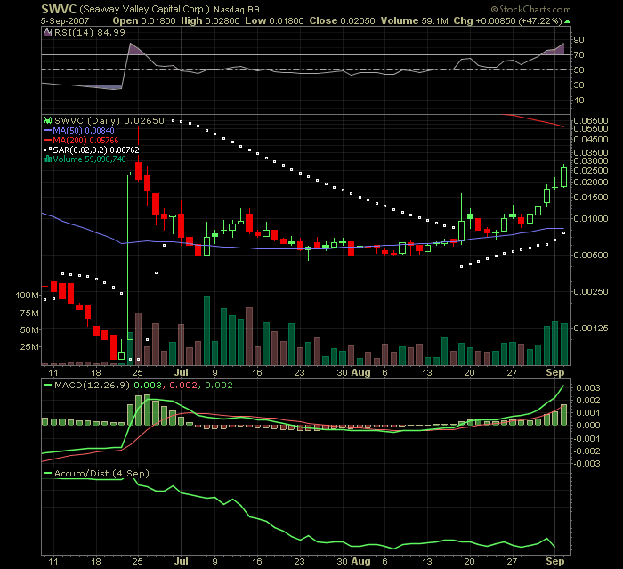 Guten Morgen SWVC-Gemeinde!Heute wird mit Sicherheit ein weiterer geldbringender Tag für uns werden. Rechne zwar nicht mit 0,045 USD aber 0,0345 sind drin.Hoffe nur die NEWS kommen bis morgen. Denn sonst könnten die Gewinnmitnahmen, den Kurs sicher um 20 % drücken.Nun meine Frage an euch,bei Veröffentlichung wirklich sehr guter NEWS, 8K, financials...mit welchem Anstieg rechnet ihr so ewta Intraday.70%,80%??? odre meint ihr da gehen, bis zu 150%?MFG euer Andreano, P.S. Nennt mal eure realistichen Kursziele...Ich könnte mir etwa 0,08 Euro gut vorstellen, in den nächsten Wochen