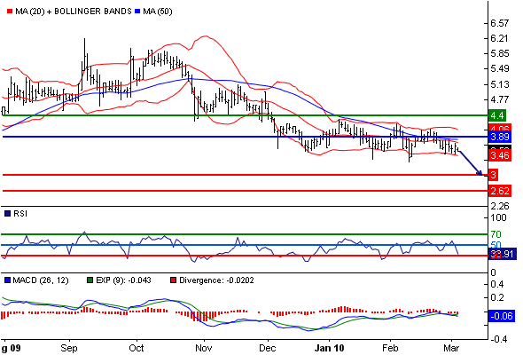 Unterstützung: 2.81 / 3.0 / 3.19 Widerstand: 3.76 / 3.89 / 4.21