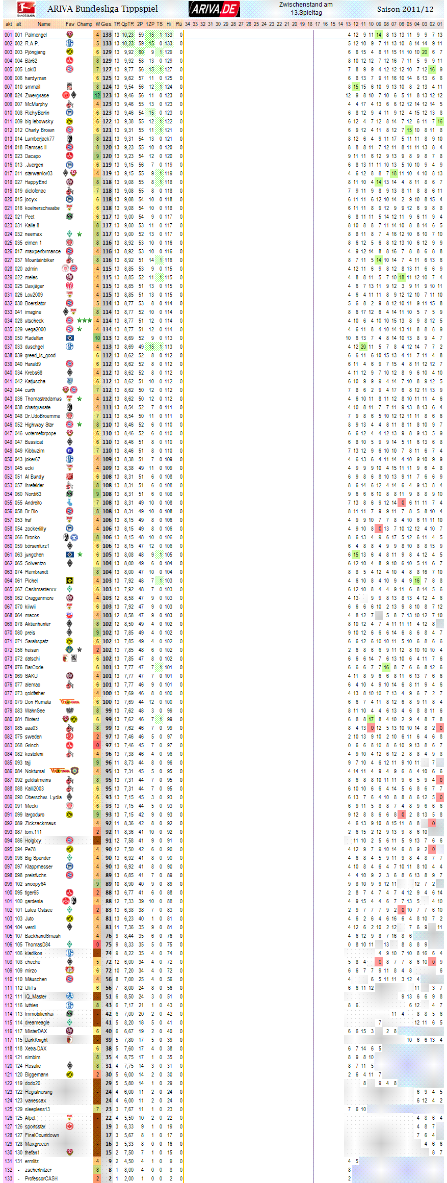 Zwischenstand Gesamtwertung Spieltag 13 7/9