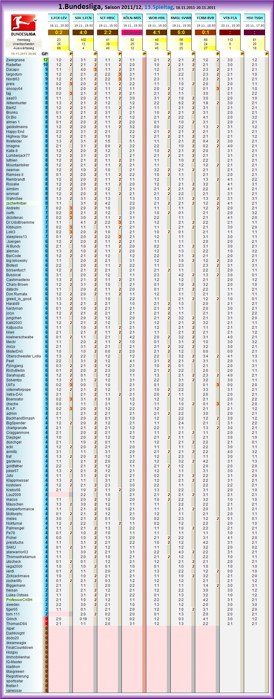 Komplette Gesamtwertung dann wie immer nach dem Topspiel des heutigen Samstages FCBM-BVB..