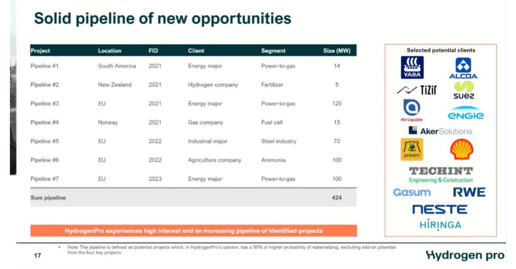 "Das Unternehmen scheint vom Megatrend bei Wasserstoff zu profitieren, und viele neue Projektankündigungen könnten kurzfristig Aktienreaktionen auslösen", schreibt Fearnley Securities.