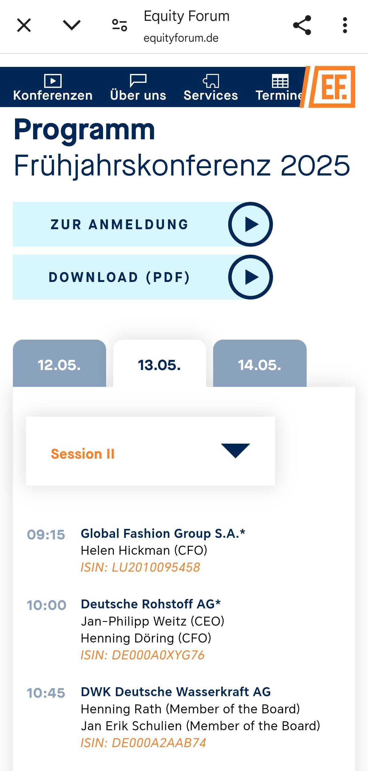 Noch knapp zwei Monate bis zur Frühjahrskonferenz in Frankfurt, bei der gem. Angabe auf der Webseite die beiden Vorstände Rath und Schulien teilnehmen werden.