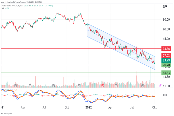 "In der Spitze misst dieser Abschwung 79 Prozent. Die vergangenen zwei Tage waren von einer Kurserholung geprägt, die sich aber als Bärenmarktrally herausstellen könnte. Der Abwärtstrend ist weiter intakt. Aktuell befindet sich der Kurs zwischen dem Widerstand bei 27,02 Euro und der Unterstützung bei 20,70 Euro. Im Falle eines nachhaltigen Durchbruchs könnte sich der Kurs auch beim Support in Höhe von 16,33 Euro einpendeln. Bis in das Jahr 2024 ist beim Gewinn pro Aktie ein Zuwachs von 116 Prozent geplant. Kann dieser Plan umgesetzt werden, ergäbe dies ein erwartetes KGV 2024 von aktuell 10,41. Die Marktteilnehmer rechnen damit, dass sich das Gewinnwachstum in zwei Jahren abflacht."