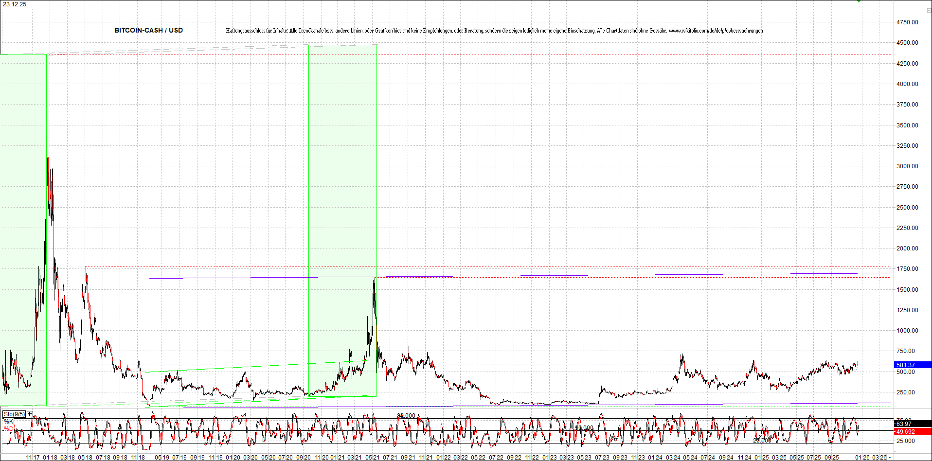 BITCOIN CASH (BCH) Chart. Oben das Zertifikat.