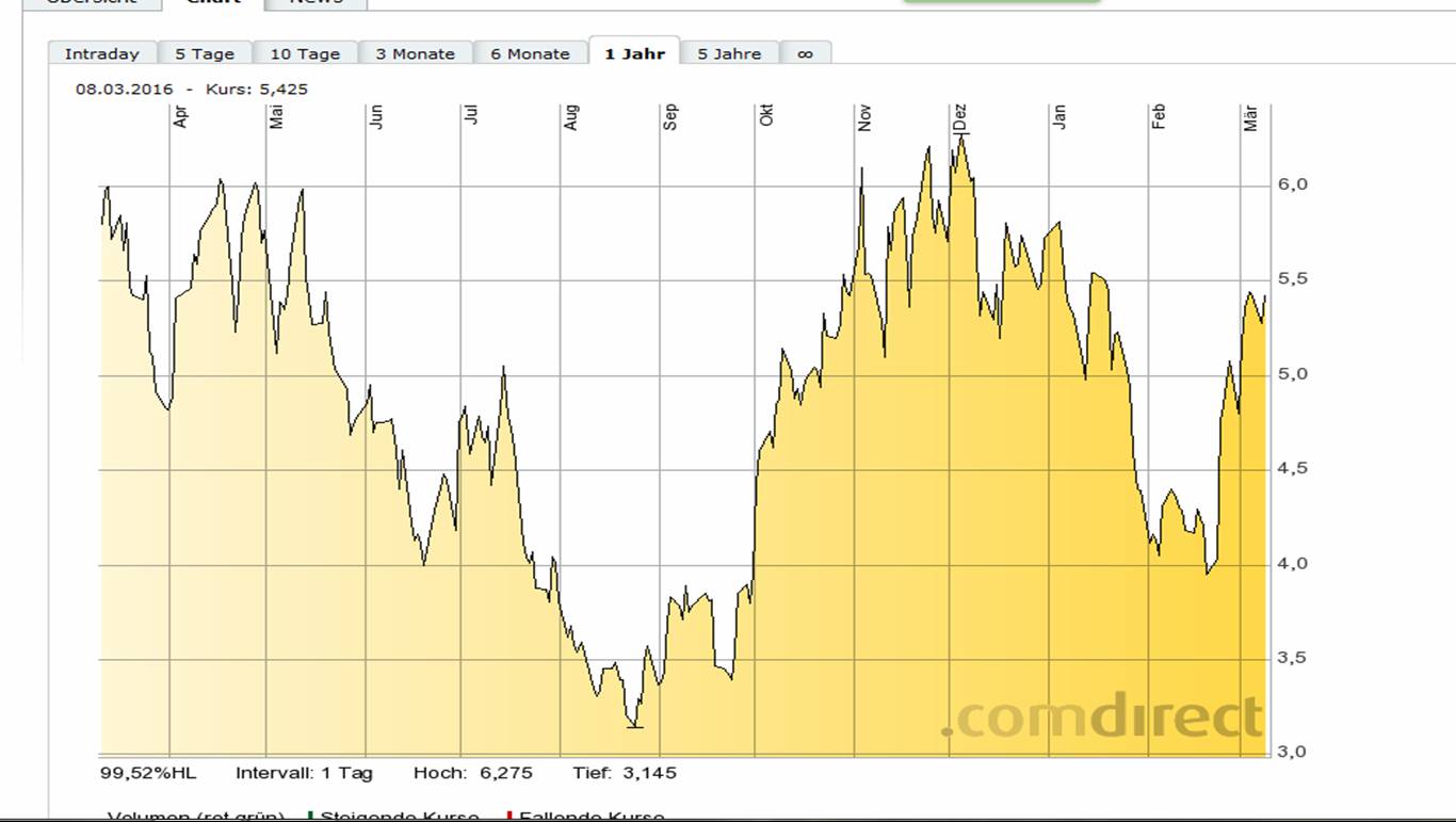 Kam ja dem jüngsten Geschehen sehr, sehr nahe :) Tief lag bei 12,45. Ich hatte ja am 29.1. auch ähnliches vermutet wie du und hatte daher später unter 13 schrittweise mit Annäherung an die 12,50 die Long-Posi neu aufgebaut ( =>crunch time @ aris 29.01.16 #1837 "..gut möglich, daß man bis zu den von dir genannten ca. 12,40/50 abgibt ... Von daher vielleicht strategisch nicht verkehrt mit Teilkäufen zu agieren und am Ende einen Mischkurs zu haben der immer noch o.k. wäre, wenn man sich wirklich um die 12,40/50 spätestens fangen würde. .."