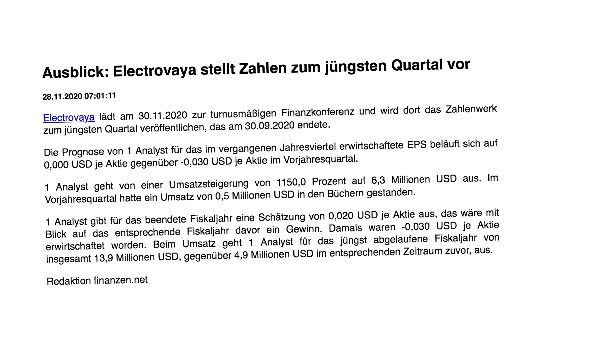 und haben sich den Spatz gepackt. Vielleicht ist Electrovaya ab 2021 überm Berg und startet neu durch.