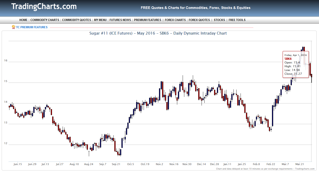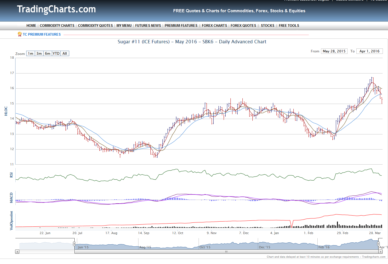 Der Focus liegt also auf Brasilien. Der BRL wird gegenwärtig wieder fester gegenüber dem Dollar. Das dürfte den Zuckerpreis mehrfach stützen: 1. Muss Brasilien höhere Preise einfordern, weil sie sonst nicht im Gewinnbereich agieren. Das ist bis 2017 wohl auch möglich, weil die Konkurrenten Indien und Tailand weniger an den Markt bringen können. 2. Wird Öl (in Dollar gehandelt) in Brasilien teurer und infolge dessen mehr Ethanol und weniger Zucker produziert. Also immer den Oelpreis im Auge behalten. Drittens bringt der Zuckerexport Divisen nach Brasilien, was die Währung weiter stärkt, weil die Brasilianer ihre Schulden bezahlen können. Trotzdem bleibt die Währung ein Risiko, wenn die Brasillianische Rezession sich beschleunigt und der BRL wieder schwächer werden sollte.