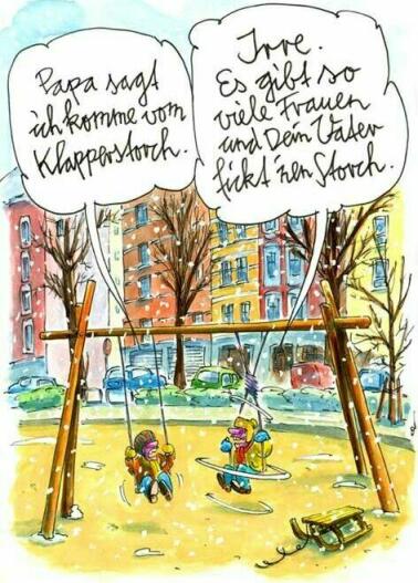 Klein Erna sitz in der Schule und bekommt zum ersten Mal Ihre Tage. Da Sie nicht weiss, was das ist, faengt Sie fuerchterlich an zu weinen. Die Lehrerin fragt, was denn los sei, sieht das Dilema, und schickt Sie nach Hause, wo Ihre Mutter Sie dann aufklaeren solle. Auf dem Gang begegnet Sie Klein Fritzchen, der natuerlich neugierig wie er ist gleich fragt, was denn los sei. "Ich blute da unten, und die Lehrerin hat mich nach Hause geschickt, damit mir die Mama erklaeren kann, was los ist." Fritzchen hebt das Roeckchen hoch und meint fachmaennisch: "Klarer Fall, Sack abgerissen...."