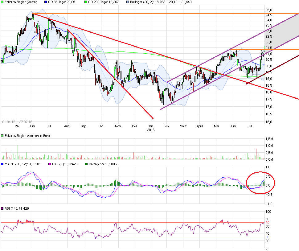 wenn die 21,65 überwunden werden, wäre vielLuft nach oben. Zumindest in den 24er Bereich könnte es dann die nächsten 2-3 Monate gehen.