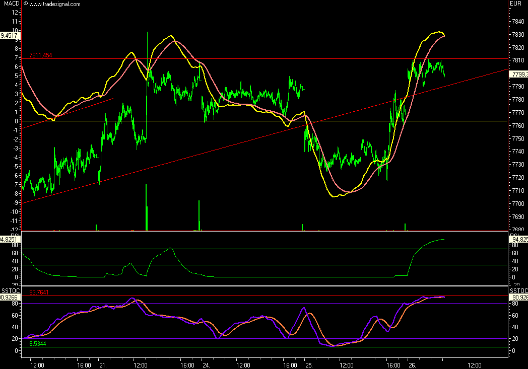 erreicht, jetzt wird es darauf ankommen ob das Tagestief gehalten werden kann, die Indikatoren zeigen zumindest eine Gegenbewegung an, auf einen Turn möchte ich derzeit noch nicht spekulieren