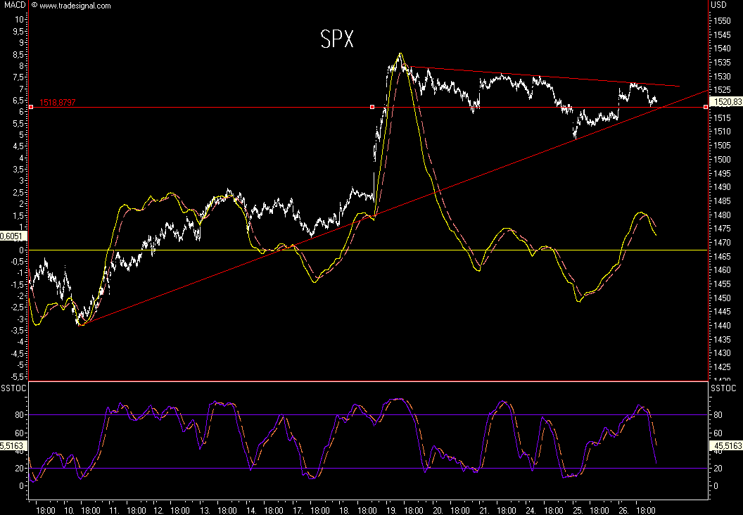 ich denke, daß der SPX sich wegen des steigenden Ölpreises retten wird, es ist allerdings spekulativ, da es noch kein Signal gibt, absichern werde ich bei dynamischem Bruch der bekannten Marken